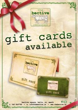 Why not treat yourself or a loved one to a Gift Card from The Bective? They make an ideal present for any occasion.