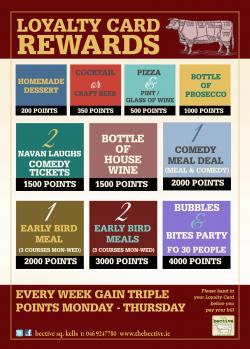 Sign up here for The Bective Kells Loyalty Card. Collect points as you spend. Get Triple points from Monday to Thursday. Plus all loyalty card holders will be eligible for special initiatives, discounts, events etc. Start accumulating points now... Find more details here.